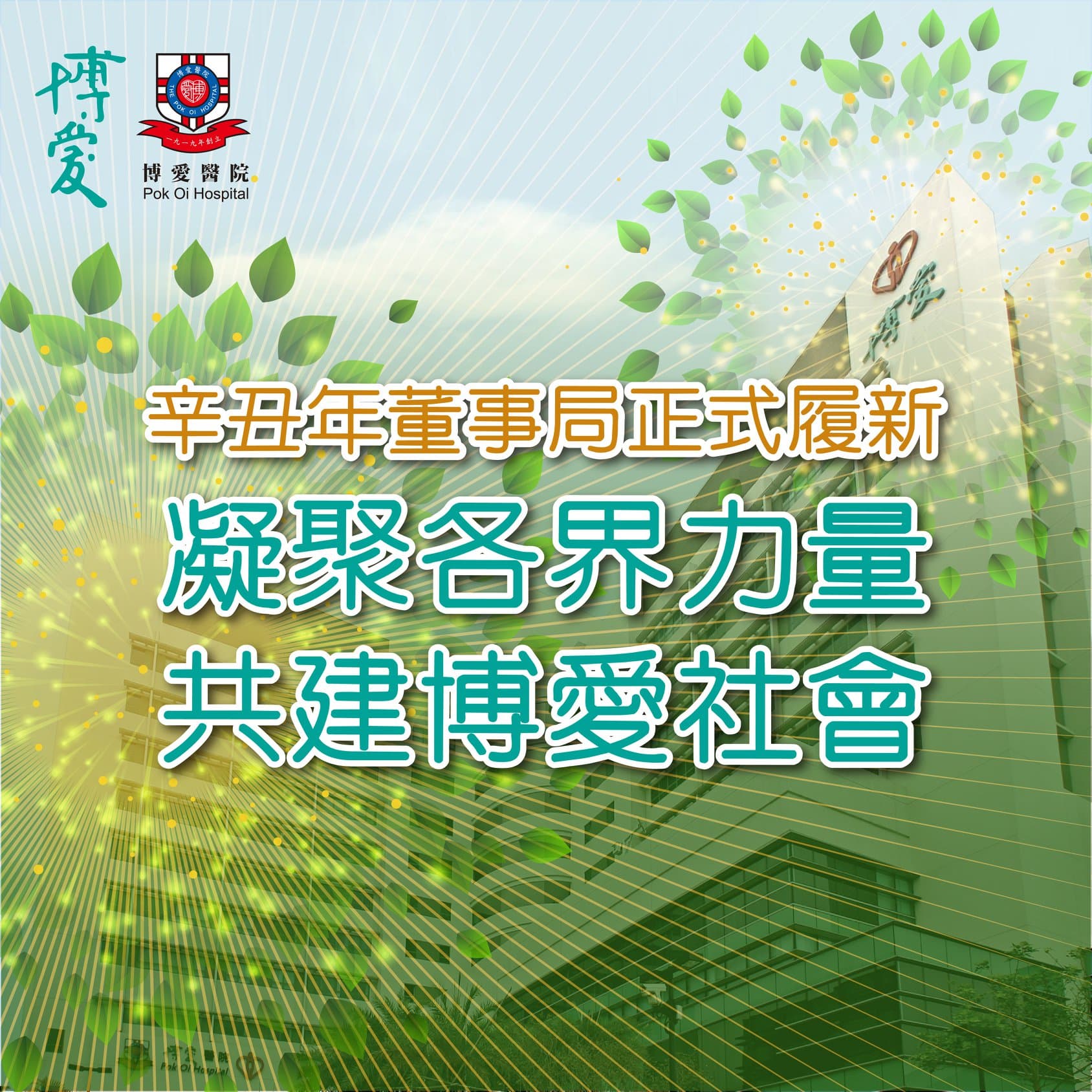 博愛醫院庚子年董事局於2021年3月31日任期屆滿,新一屆辛丑年董事局於2021年4月1日正式履新,繼續秉承「博施濟眾• 慈善仁愛」的宗旨服務社群。