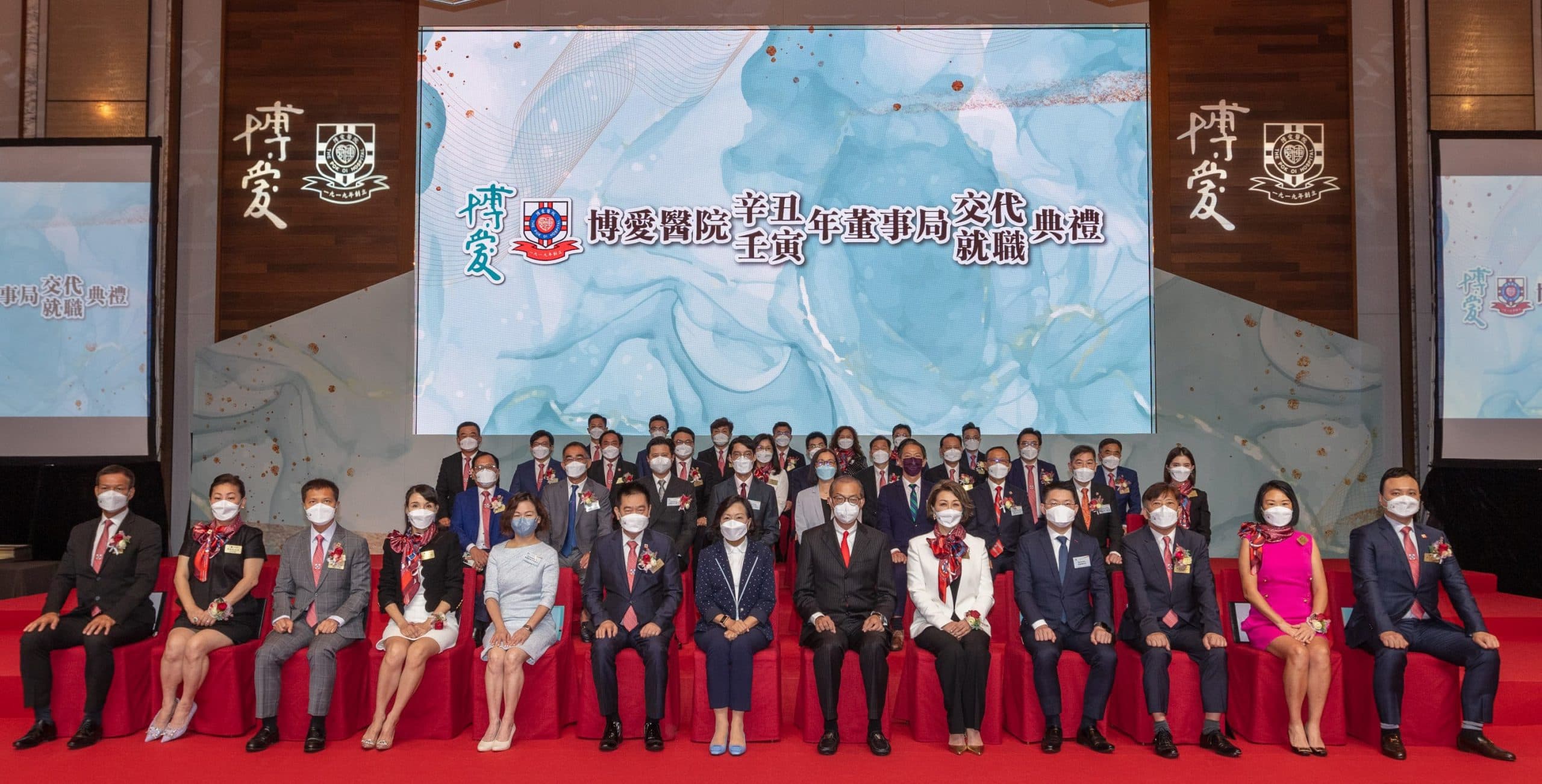 博愛醫院辛丑年董事局於2022年3月31日任期屆滿,新一屆壬寅年董事局於2022年4月1日正式履新,繼續秉承「博施濟眾• 慈善仁愛」的宗旨服務社群。為隆重其事,博愛醫院於2022年7月28日(星期四)假香港瑰麗酒店舉行「博愛醫院辛丑壬寅年董事局交代就職典禮」,本院榮幸邀請得醫務衞生局局長盧寵茂教授, BBS, JP以及民政及青年事務局局長麥美娟女士, SBS, JP擔任主禮嘉賓,並邀得多位政商界友好及董事局前賢蒞臨觀禮。