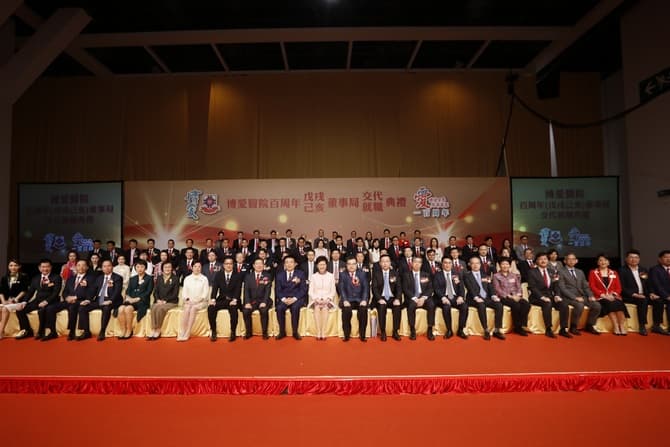 博愛醫院舉行「博愛醫院百周年(戊戌己亥)董事局交代就職典禮」,邀得香港特別行政區行政長官林鄭月娥女士, 大紫荊勳賢, GBS、國家中醫藥管理局局長于文明先生、中央人民政府駐香港特別行政區聯絡辦公室副主任何靖先生及民政事務局副局長陳積志太平紳士擔任主禮嘉賓,並獲多位政、商人士、各界團體代表到場支持。
