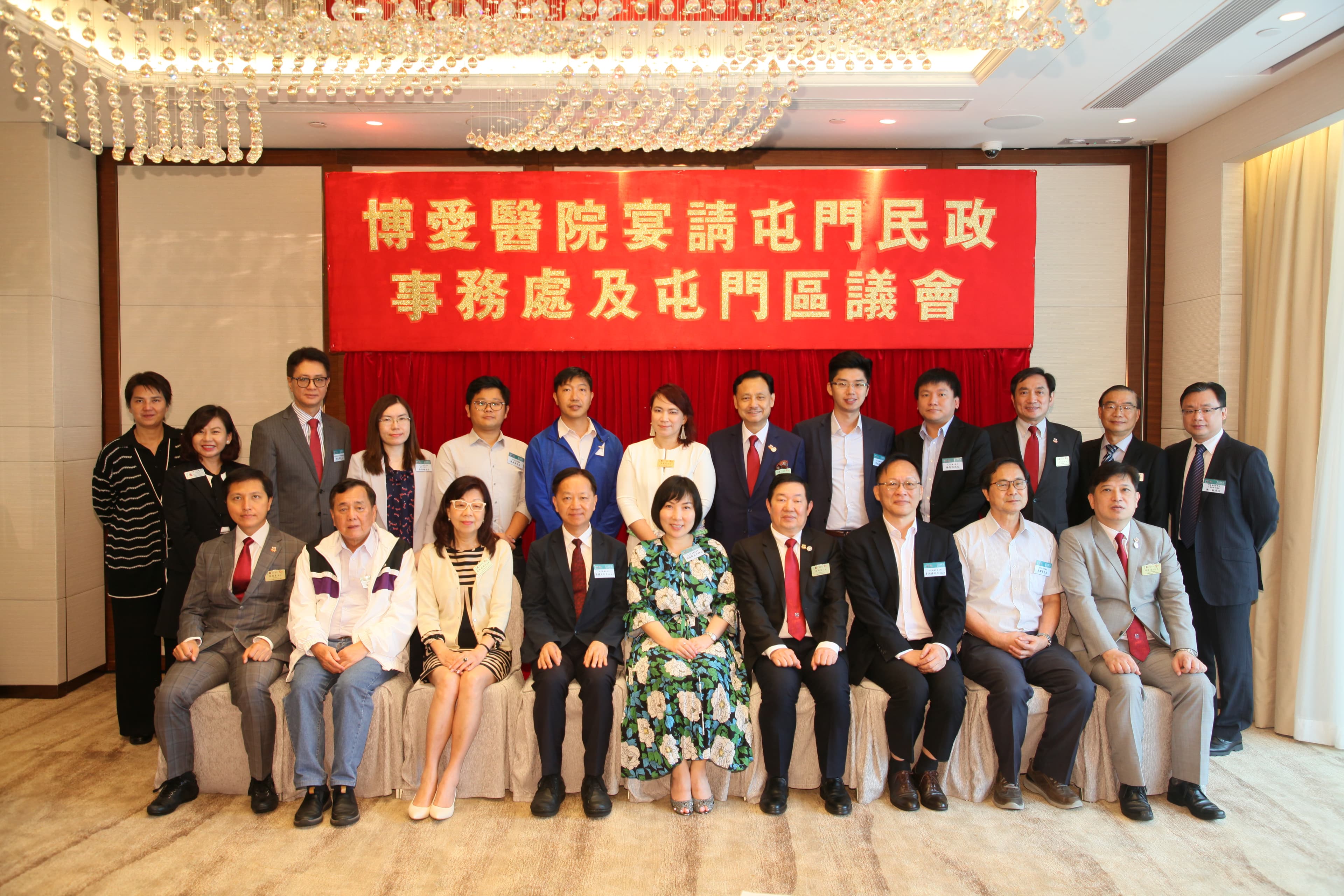 (香港,2019年5月28日) 為加強與政府各部門之聯繫與溝通,促進地區工作的發展,博愛醫院於2019年5月28日(星期二)設宴招待屯門民政事務處及屯門區議會,與屯門民政事務專員馮雅慧太平紳士、屯門區議會主席梁健文太平紳士及一眾議員,就博愛醫院未來的地區慈善工作,交換意見。