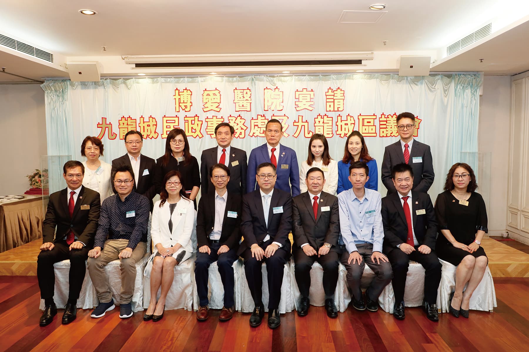 (香港,2019年6月6日) 為加強與政府各部門之聯繫與溝通,博愛醫院己亥年董事局於2019年6月6日(星期四)設宴招待九龍城民政事務處及九龍城區議會,與九龍城民政事務專員郭偉勳太平紳士、九龍城區議會主席潘國華太平紳士及一眾議員,就博愛醫院未來的地區慈善工作,交換意見。