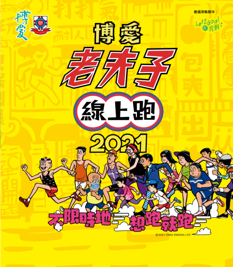 為鼓勵市民多做運動,保持身心健康,博愛醫院與HK01旗下流動應用程式「齊動LetZ Goal」合作,推出「博愛x老夫子線上跑2021」,於疫情期間繼續推廣運動及健康生活態度,齊以運動排解壓力,以樂觀正面的心態面對疫情!今屆主題設計繼續由《老夫子》第二代作者王澤老師執筆,打造別具情懷的繪圖及賽事禮品。藉港人的集體回憶結合跑步,以及善用運動科技,推廣本地原創文化藝術;而「線上跑」形式更撇除場地限制,將運動與慈善時刻融入生活,為博愛醫院社會服務籌募善款,別具意義。