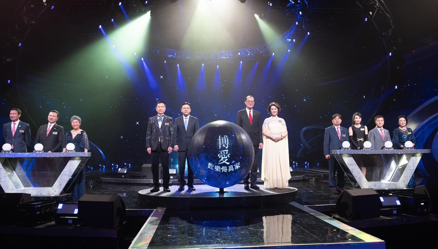 博愛醫院榮幸邀得醫務衞生局局長盧寵茂(右六)、勞工及福利局局長孫玉菡(左五)擔任「博愛歡樂傳萬家2023」的主禮嘉賓,並由博愛醫院董事局主席林群(右五)、候任主席陳首銘博士(左四)、副主席周駿達(右四)、副主席黃曉君(右三)、副主席陳國基博士(右二)、副主席廖齡儀(右一)、副主席韓嘉軒(左三)、副主席曹思豪(左二)及副主席黃偉光(左一)攜手主持亮燈儀式。